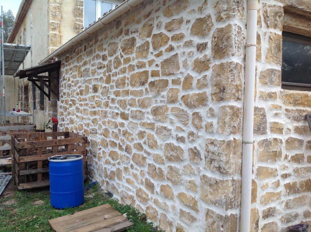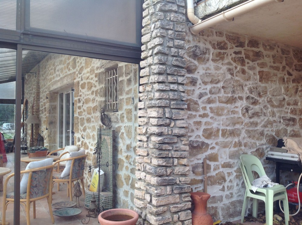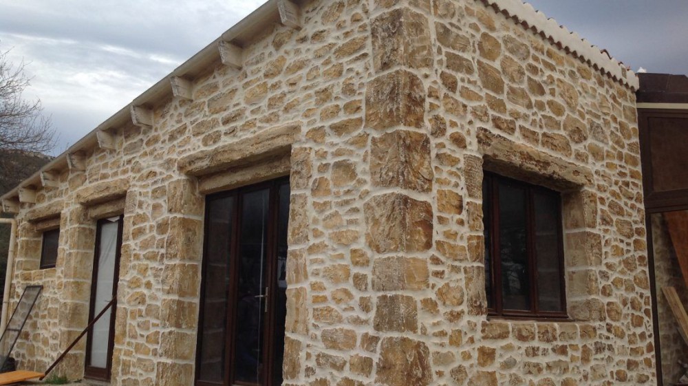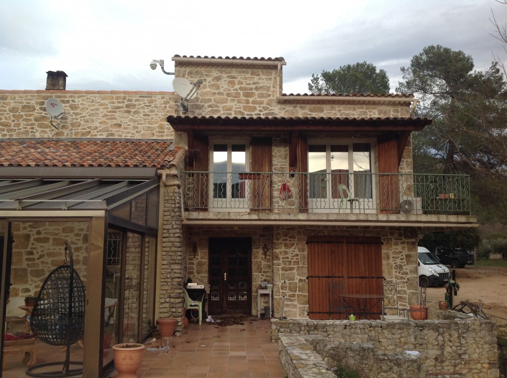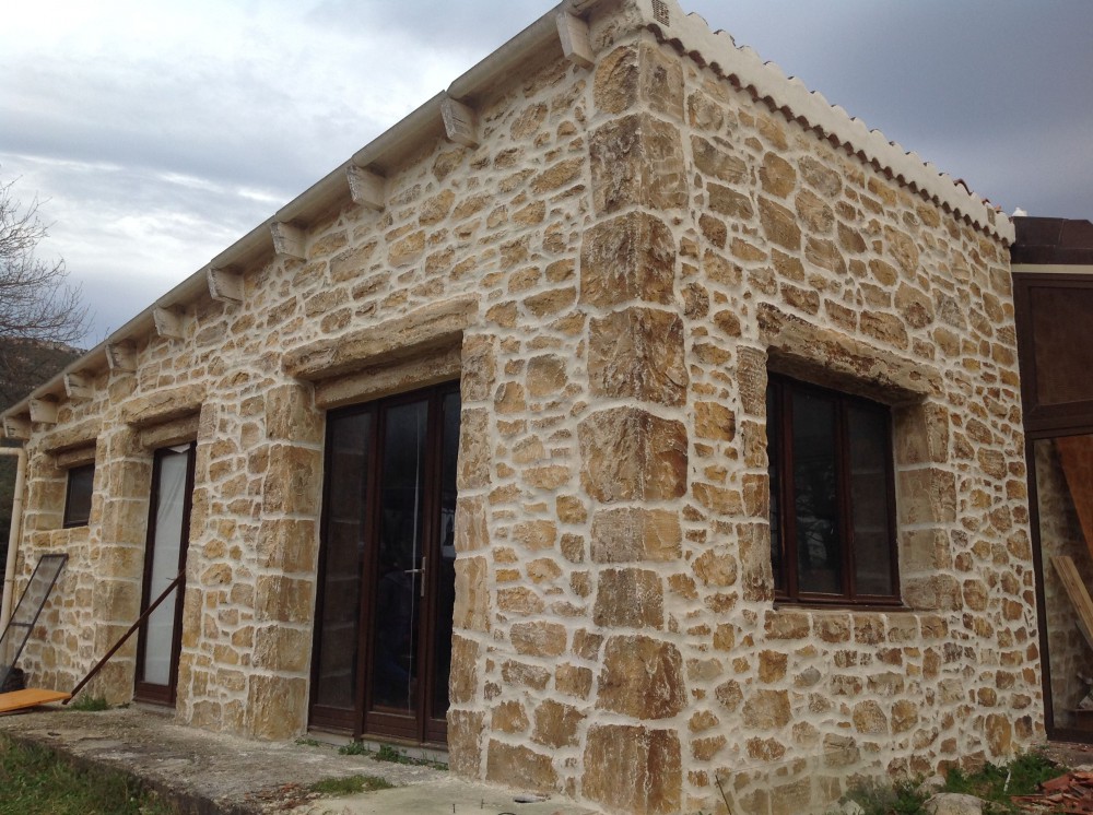 Pour cette villa située à Signes, la façade entière a été décorée par notre enduit imitation pierre.